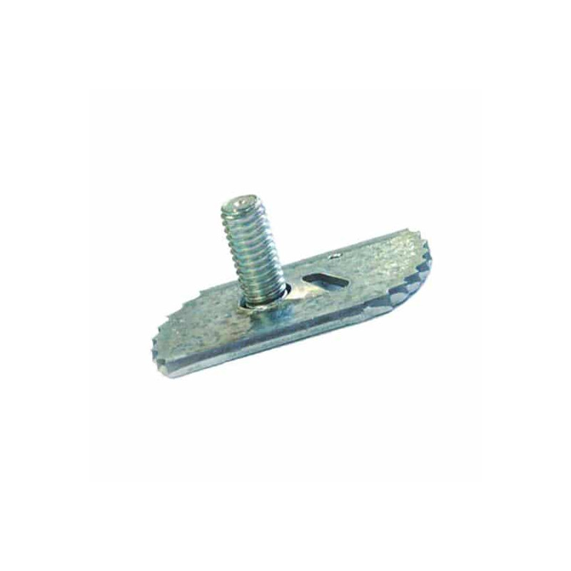Le clameau s'insère dans la gorge du profilé sur le chantier et se bloque par « quart de tour » grâce à l'empreinte de tournevis.